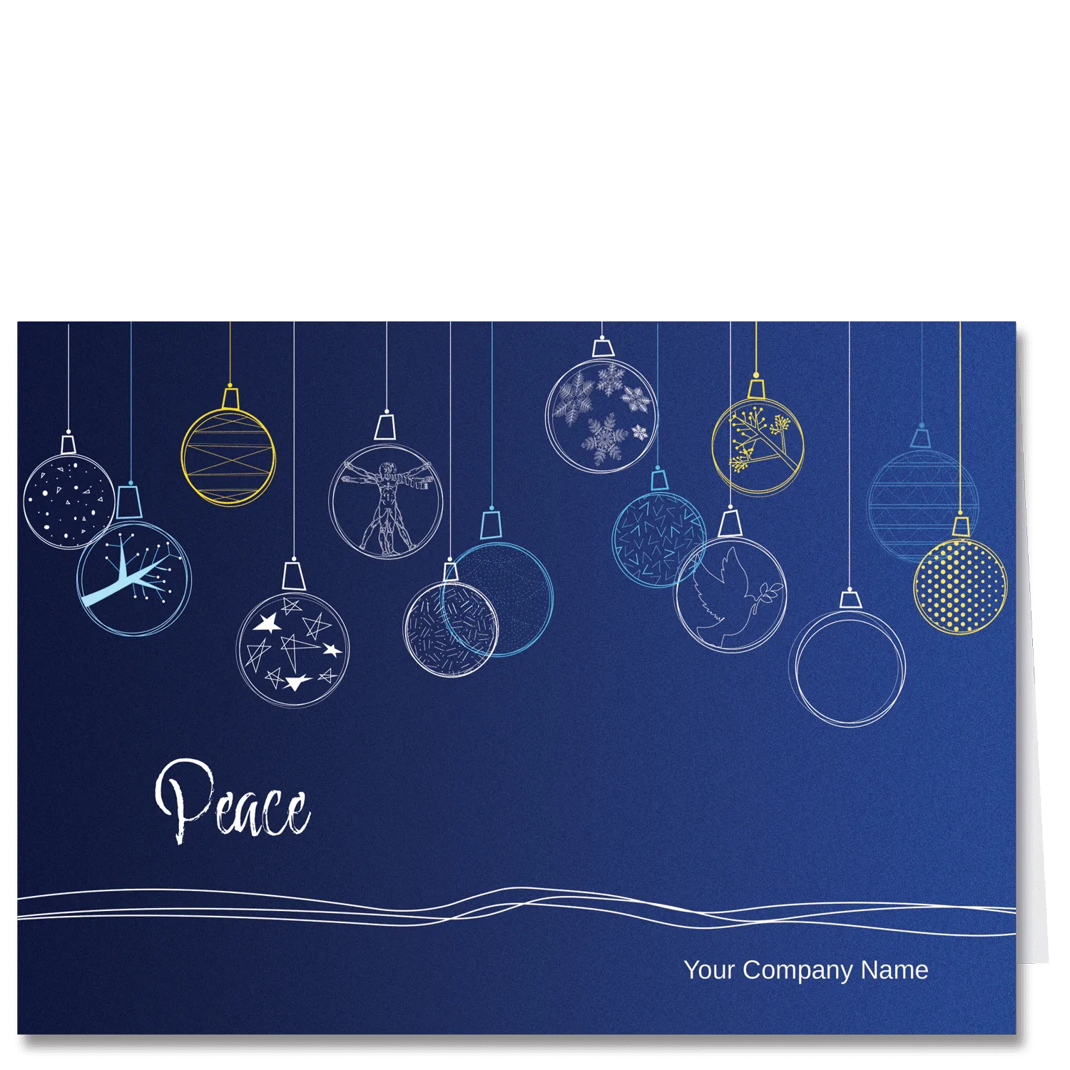 An ensemble of ornaments graces this design printed on shimmery sapphire paper. Over a dozen decorative baubles capture the eye on these customizable architect Christmas cards. You get to decide how your company name appears on the front, and choose from a number of greetings, like “Merry and Bright,” or “Let it Snow.” Click on the yellow “Design online” button to see your options.