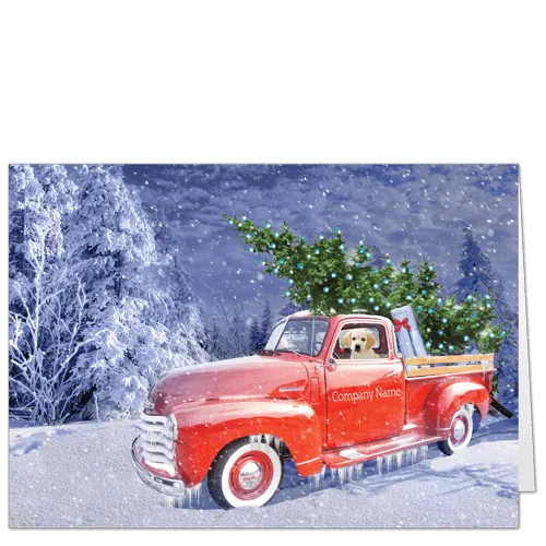 As you search our gallery for that perfect holiday greeting, remember all our cards are meant to be fully customizable. This one features your company name or logo right on the door of the truck.
