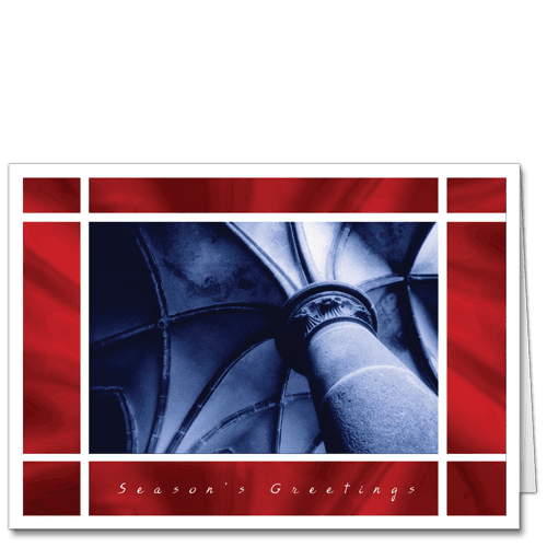 Holiday Colonnade, is an example of just one of our christmas card designs. This Christmas card can be personalized online using our easy and fun to use online editor. You will be able to select the greeting on the front of the card. On in the inside, you can select from one of our prewritten verses, write a verse of our own, or use an illuminated verse. You can choose your fonts, colors and size for the verse and your company name.