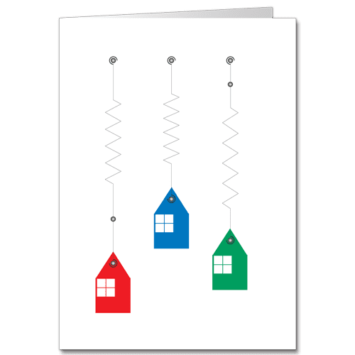 Embrace the aesthetic rule-of-three as well as the generous whitespace with this eye-catching design for your firm’s architect holiday cards. Three little houses in almost-primary hues dangle from suspension wires on a white background. Seussian simplicity minus the eccentric rhyme results in a precious and memorable design. Make that valuable connection with your clients, vendors, family, and associates, and show your appreciation and goodwill at the holiday season. And because you probably appreciate minimalism and/or classicism, we would be remiss if we didn’t direct your attention to some of the other designs in our collection similar to this one.