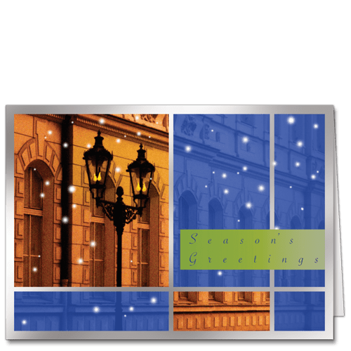 An Old Fashioned Winter Scene, This Corporate Holiday Card is Absolutely Stunning on Our Pearlescent or Silver Metallic Card Stock ~