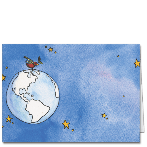 This lovely illustration is the perfect design to share your holiday wishes for a peaceful New Year. It's also available to be customized, if you'd like to add your family or company name inside the card - just click here to see the custom version of Peace on Earth that you can personalize online.