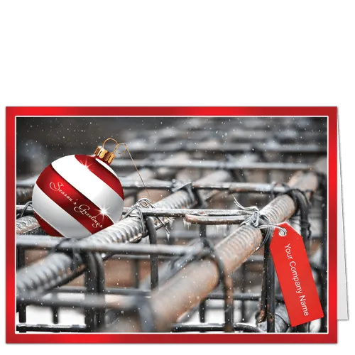 Our Civil Engineering Christmas Card is All Wire Tied Up and Structurally Sound. Personalize Online With Your Choice of Greeting on the Christmas Ornament and Edit The Gift Tag to Feature Your Own Company Name on the Card Front ~