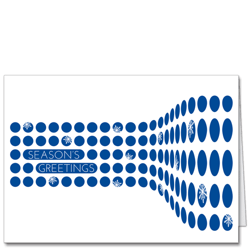 A cool, mid-century modern holiday greeting to wow your clients and associates. Large blue dots in formation following a path to holiday cheer give this design its retro-but-modern edge. Express your goodwill for the Christmas season by personalizing this card for your clients, friends, family, and colleagues.