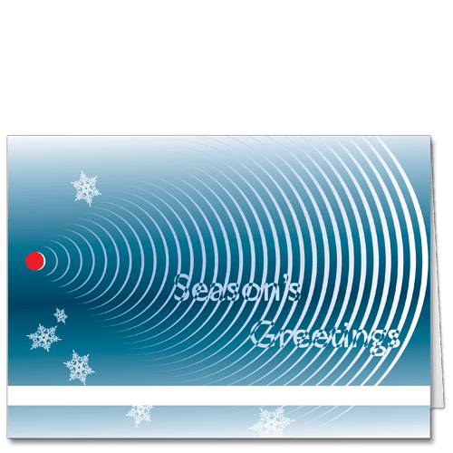 As we depict in our acoustic engineering holiday card “Keeping it Below 80dB”, warm seasonal sounds emit from a single point source. The sounds then ripple cheerfully through an abstract holiday landscape in an OSHA approved way. This is a great business holiday card for engineers and acoustical or sound engineers. Are you an architectural firm designing concert halls or auditoriums? If so, this engineering Christmas card is a great choice for your company too.