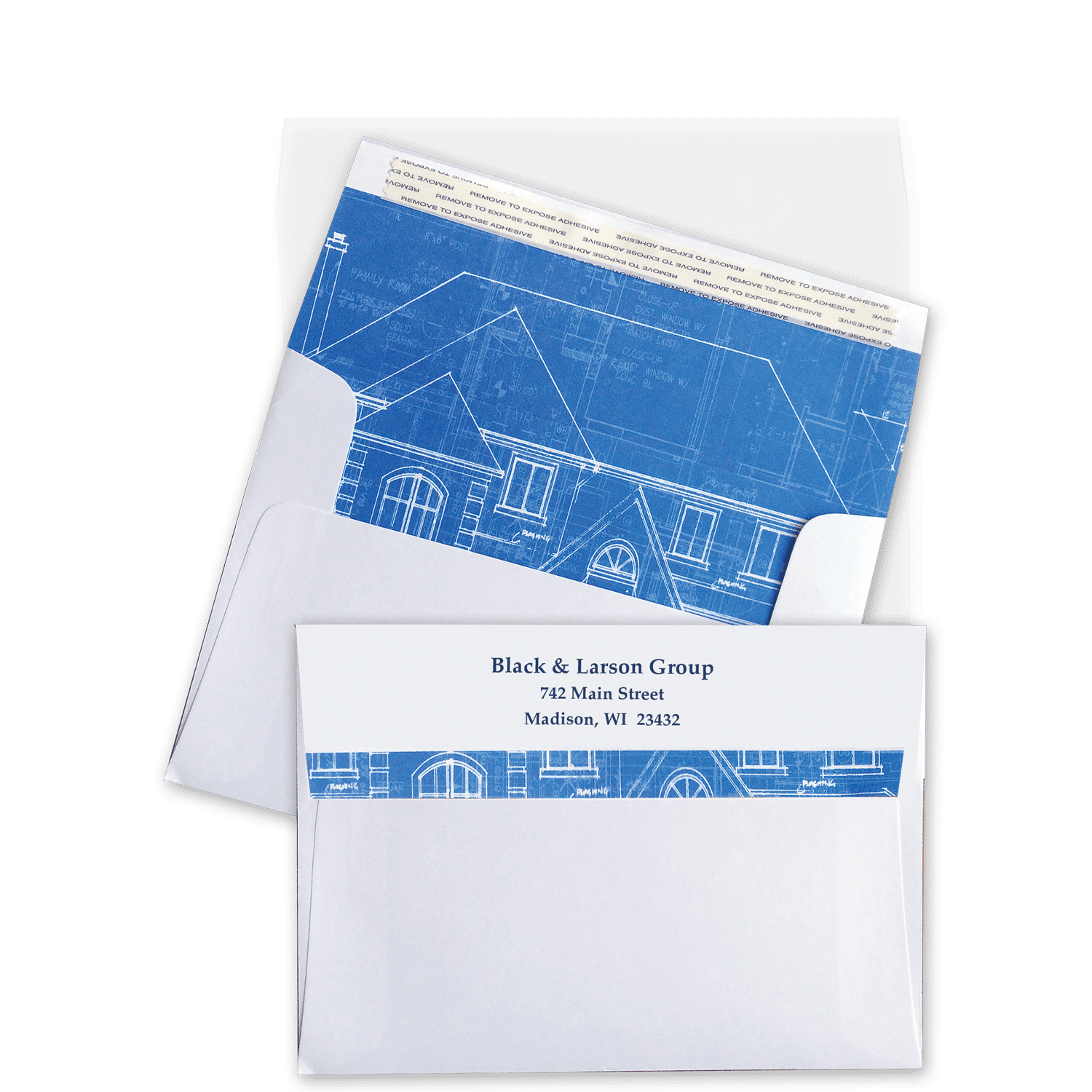 A subtle strip of blueprint hints at your profession on the back flap of these self sealing envelopes printed with your return address. Opens to reveal more blueprint!