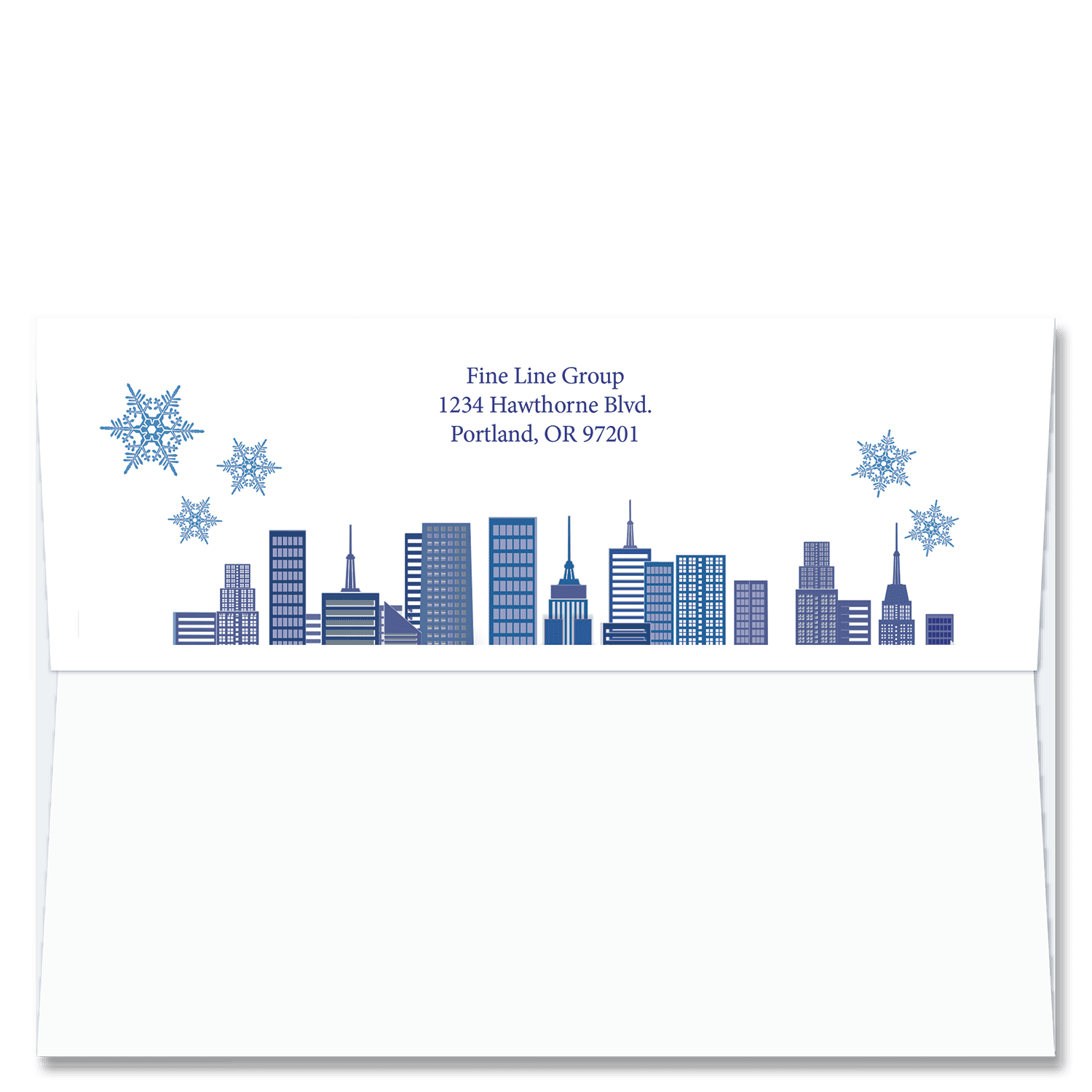 Personalize online and your address will be printed as shown on our classy Cityscape self-sealing envelopes ~
