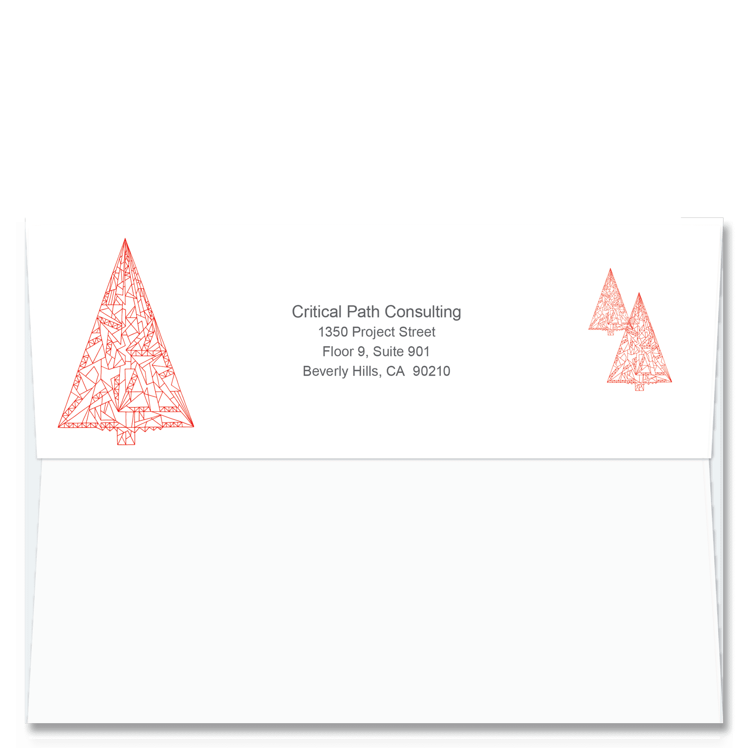 This Christmas card envelope is a perfect match for our ISO Christmas Tree 4302 architectural holiday card design and is printed on our self sealing envelopes. Add your return address online where it will appear framed between 3 tree forms in red ~