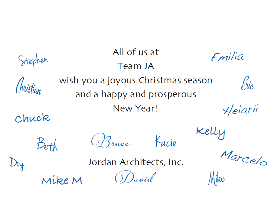 Our printed ScriptySigs™ add fun and flair to your business Christmas cards at a very economical price (and speedy turn around). We can mix and match fonts per your preference, and sprinkle the names of your staff inside your company holiday cards. Of course, we’ll always send you a proof for your approval before printing. This option is especially useful if your team is spread out and it might be difficult to gather them all together to sign their actual signatures on a template for scanning. (You’ll choose our Add Printed Signatures 2002S for that.)