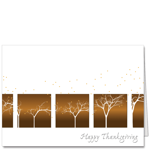 This Corporate Thanksgiving Card Features a Spare Design and Frames A Delicate Tree in the Fall ~